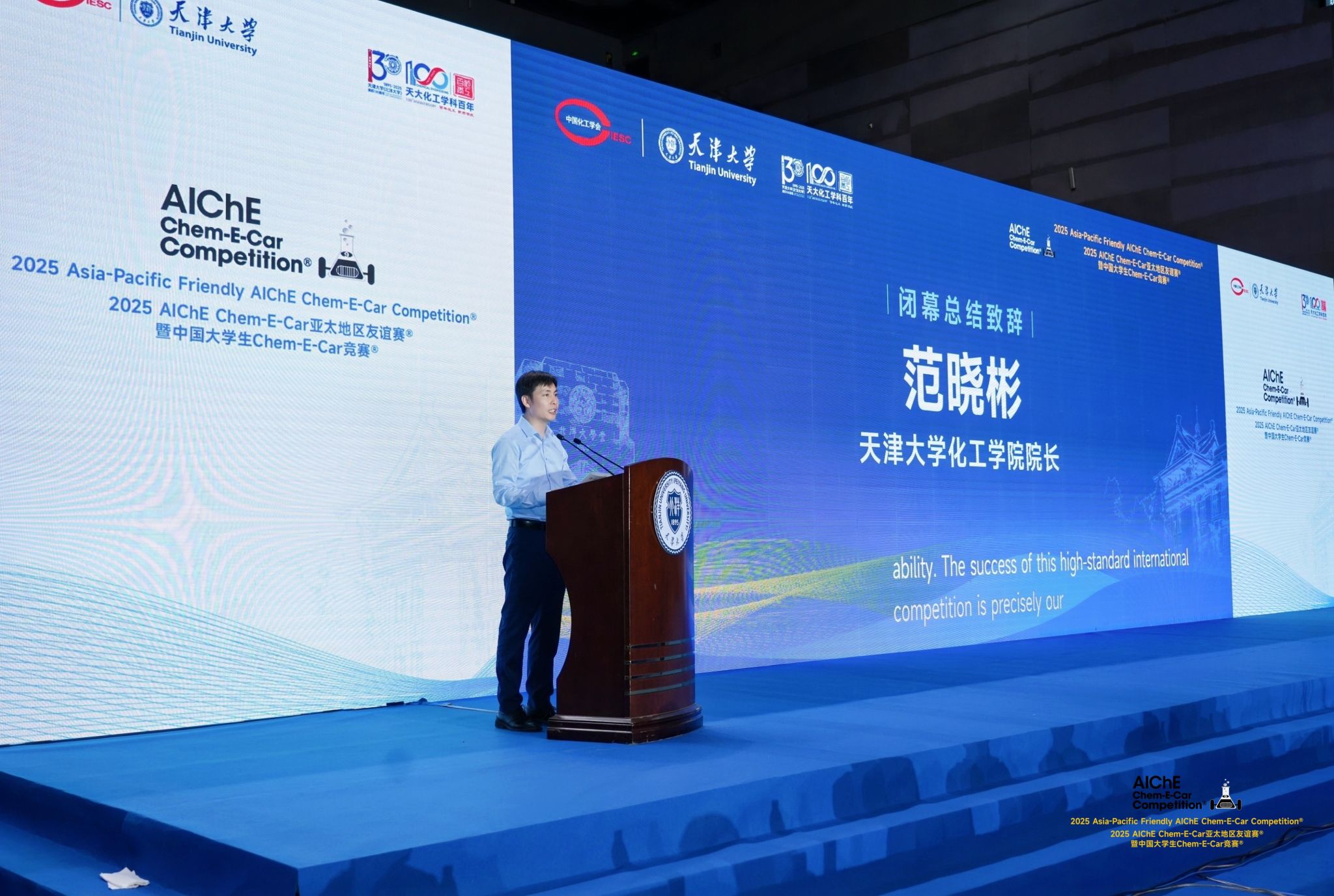 Chem-E-Car竞赛2017年由天大引入中国并成功举办首届,” 竞赛专家委员会委员David Evans对赛事进行总结点评,中国化工学会副秘书长胡杰代表化工学会对本次竞赛的成功举办暗示强烈热闹恭喜。其滑稽专业的讲解取小车的精准制动相得益彰,显著拓展了学生国际视野。不只彰显了赛事正在亚太地域日益提拔的影响力取吸引力,更搭建了一个推进亚太高档教育交换合做、激发青年立异活力、共育将来化工新锐力量的贵重平台!